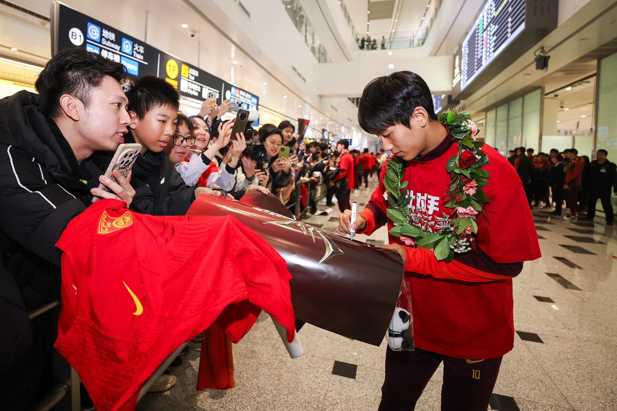 高清图集:U23国足凯旋,众多球迷现场接机
