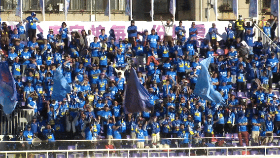 现场球迷:“我们演员身穿古代的蹴鞠服,很多人还穿了汉服,我们这个方阵有别于其他方阵,用国风的方式为昆明队加油助威。”