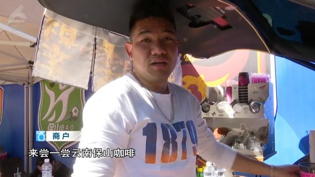 商户:“我们的豆子是云南本地的小粒咖啡,保山的豆子,主要是为了让全国各地来看比赛的朋友,来尝一尝云南保山咖啡,特产小粒咖啡。”